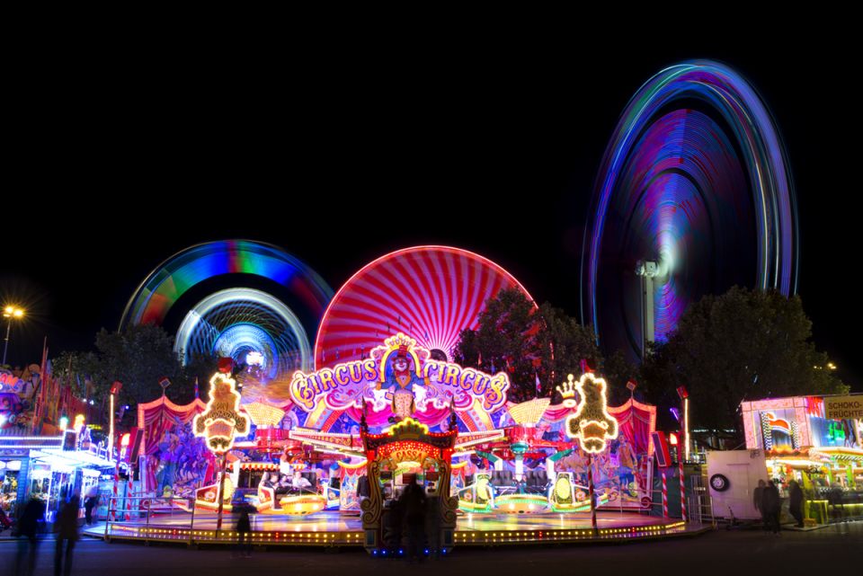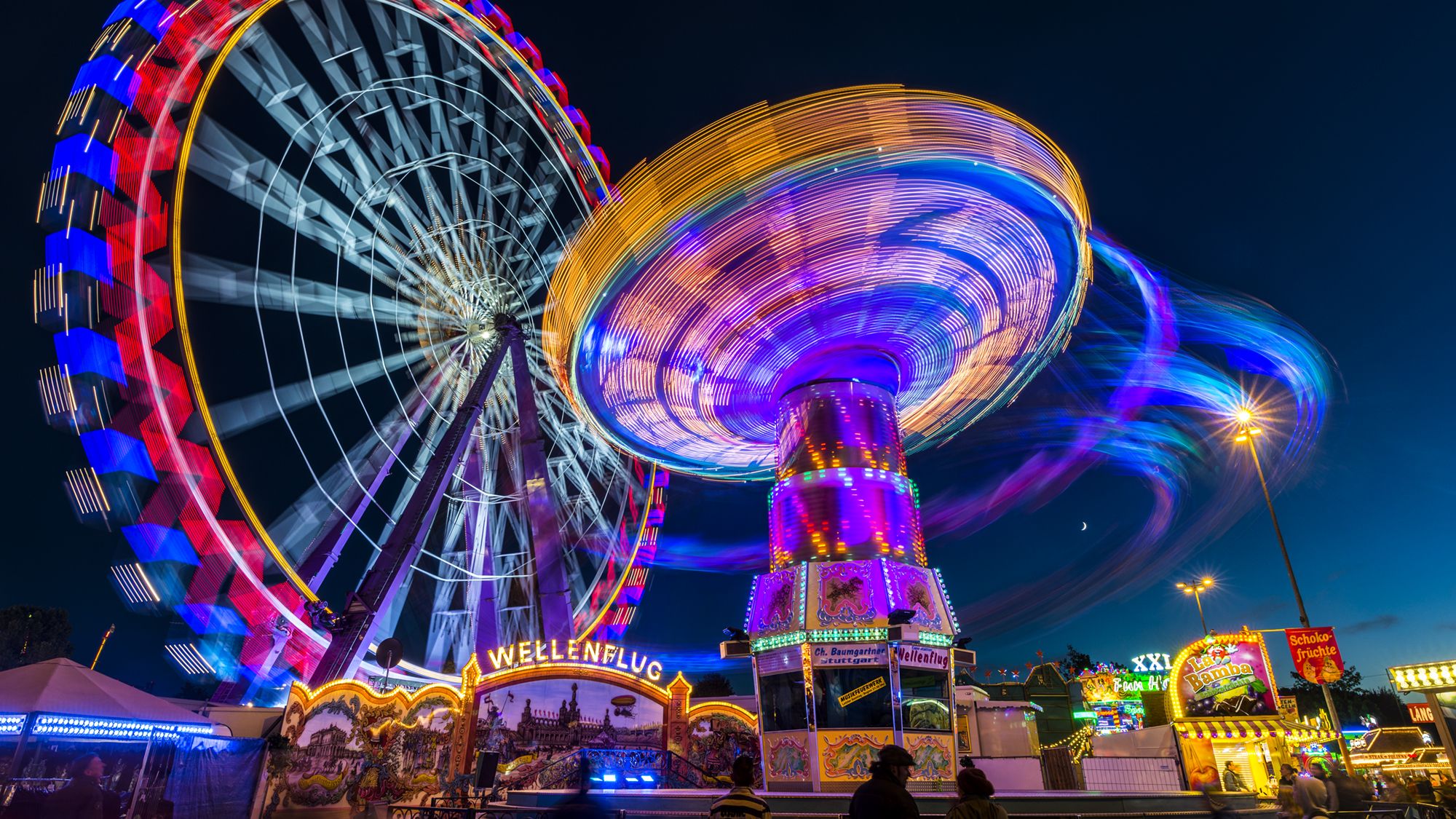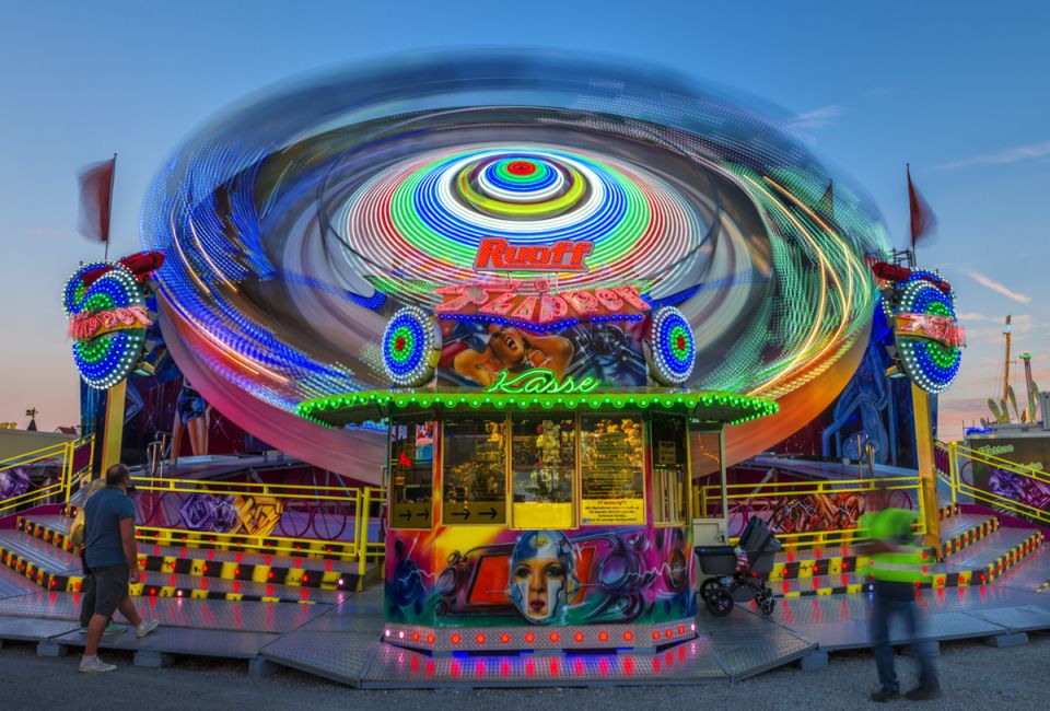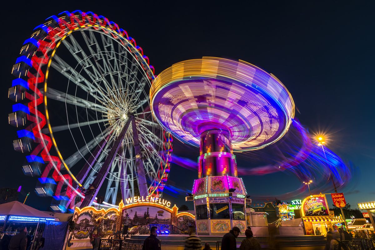 Evening light painting at the Stuttgarter Volksfest. After the Oktoberfest in Munich the second largest beer festival in the world.