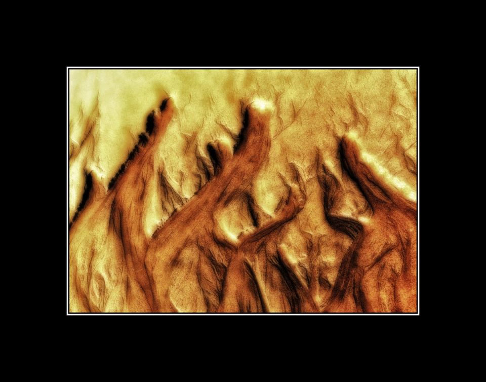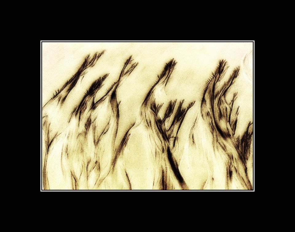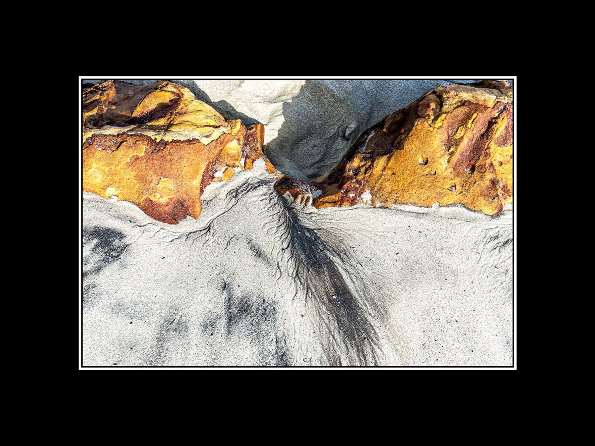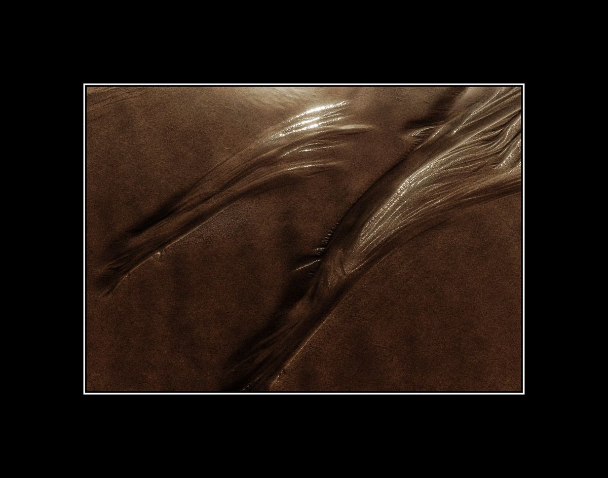Eindrücke von Spaziergängen an Meeresstränden. Sandgebilde experimentell in Szene gesetzt.