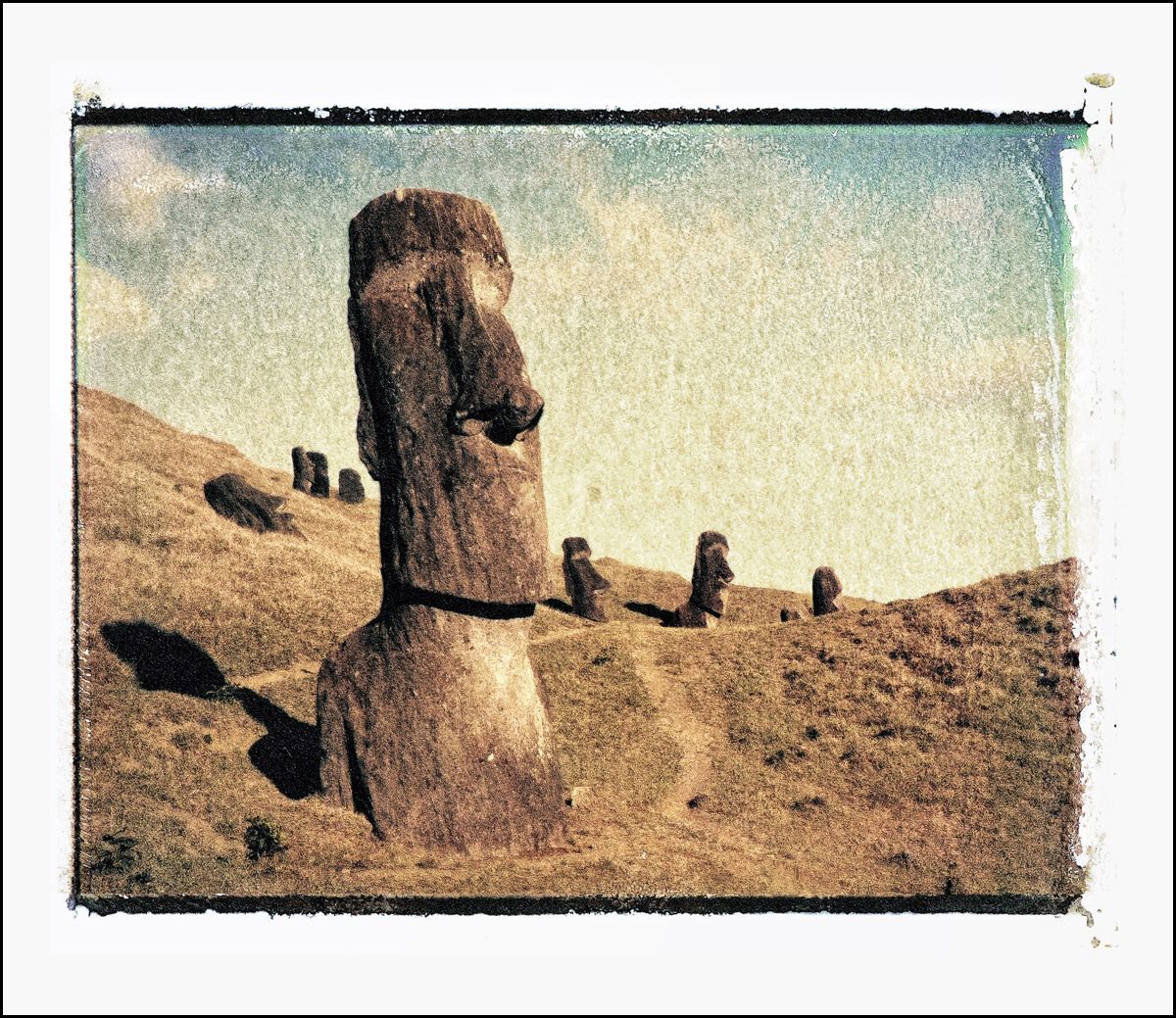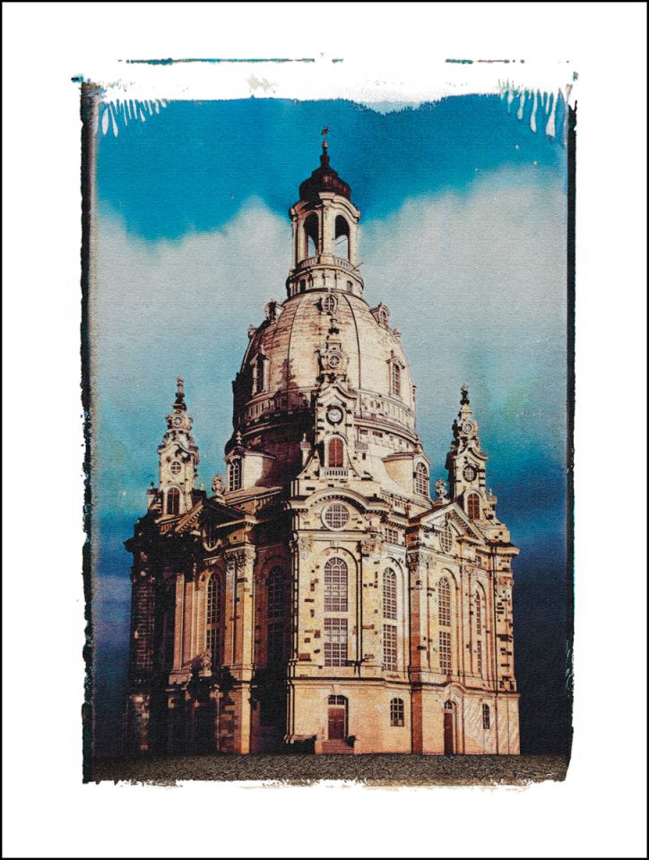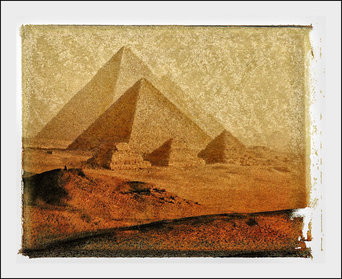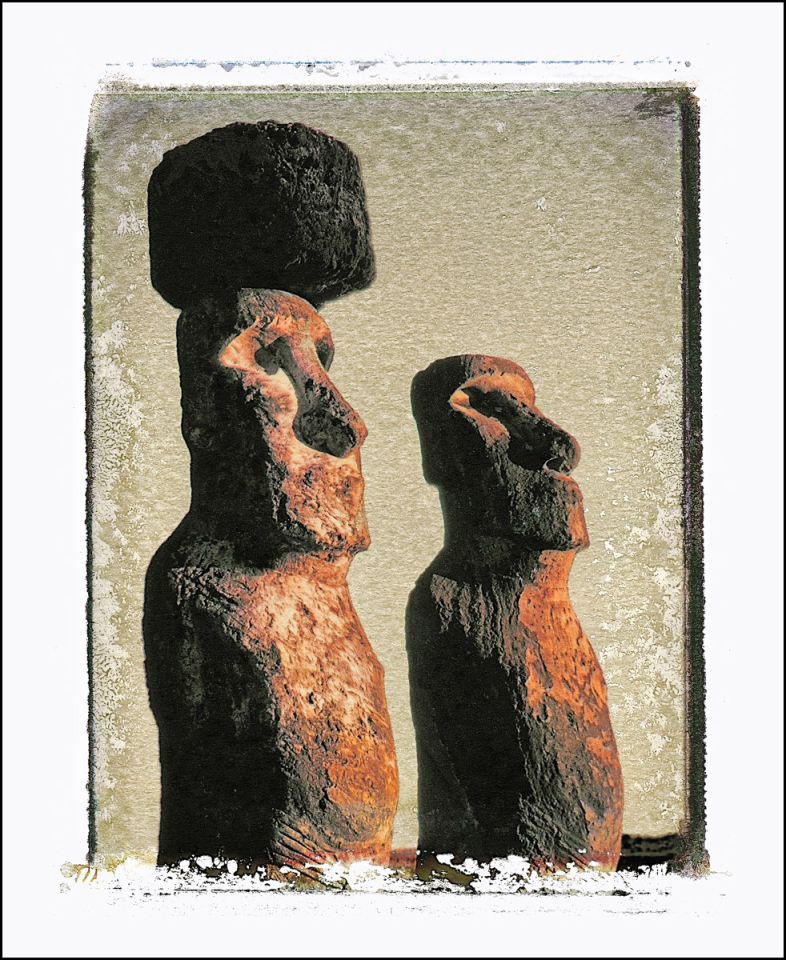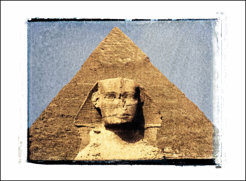 Bauwerke und Figuren der Weltkultur, erstellt mit der Pola-Transfer-Technik, analog fotografiert, anschließend digital bearbeitet und auf Aquarellpapier großformatig gedruckt.